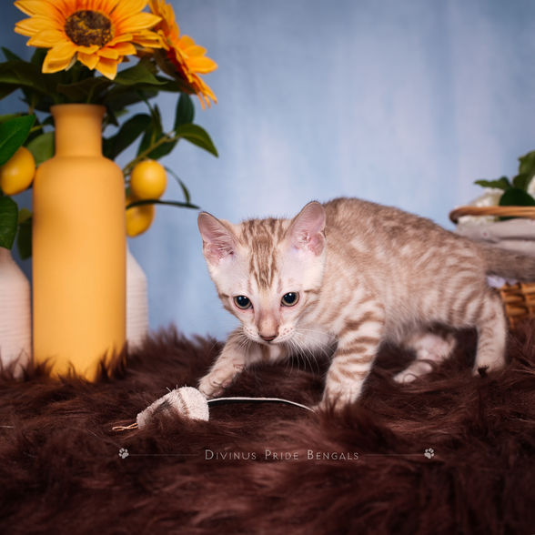 As the golden hush of a late spring morning settles over the garden, three snow Bengal brothers - Aspen, Sol, and Haze - emerged from Queen Arabella’s nest of ivy and lavender. Their white coats shimmered like sunlight on mountain snow, soft and silent but full of promise. Aspen led with quiet confidence, his paws steady and sure. Echo followed, always watching, always wondering, his curiosity echoing in every rustle and breeze. And Sky, the dreamer, often paused to stare upward, chasing clouds with his eyes before his paws. With the world waking around them and adventure thick in the air, the three brothers leapt into summer ready to explore, to play, and to leave their snowy mark on the sunlit world.